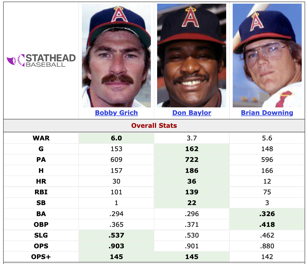More importantly, Baylor wasn’t even the best player on the Angels. Both Bobby Grich and Brian Downing were simply better players that season.