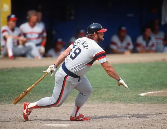 They were right. With the exception of a couple of games at first base in 1983, Luzinski never played in the field again. But he could still hit. Even when hurt in his final two seasons in Philadelphia he’d managed above-average OPS+ marks, so slotting him into the designated hitter role in Chicago was the obvious move. The position was essentially invented with players of Luzinski’s type in mind.