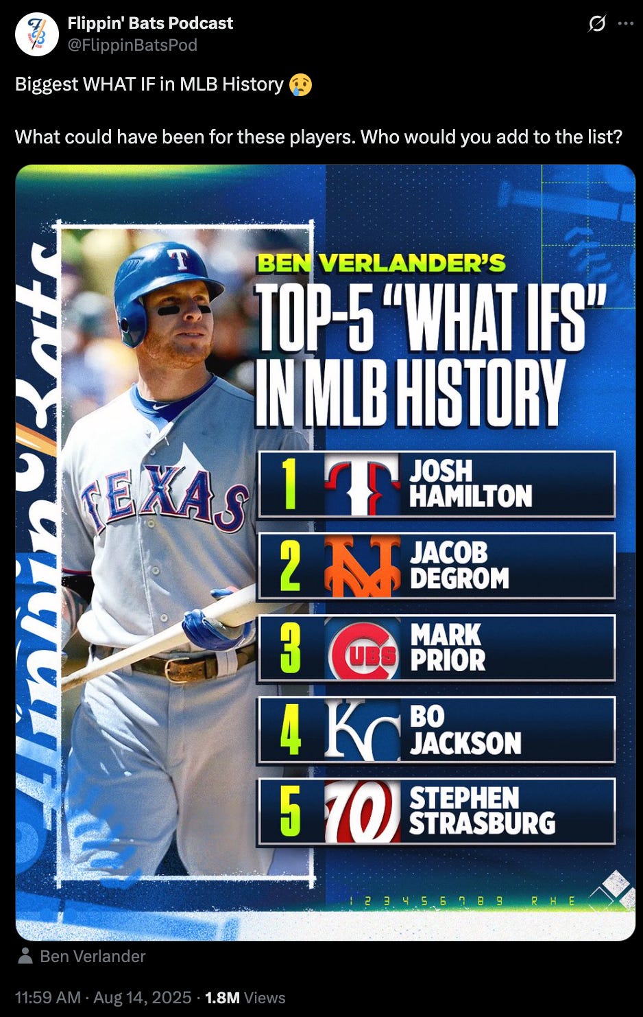 This ancient revelation of the game’s past comes to us from Ben Verlander. That’s Justin’s little brother, a former ballplayer who batted .252 once in the Florida State League way back in 2016, so he’s an old soul. He was born in the 1900s if you can believe that. He’s obviously really wired in to the storied yesteryear of the National Pastime, otherwise he wouldn’t be able to produce goldmines of information like this one: