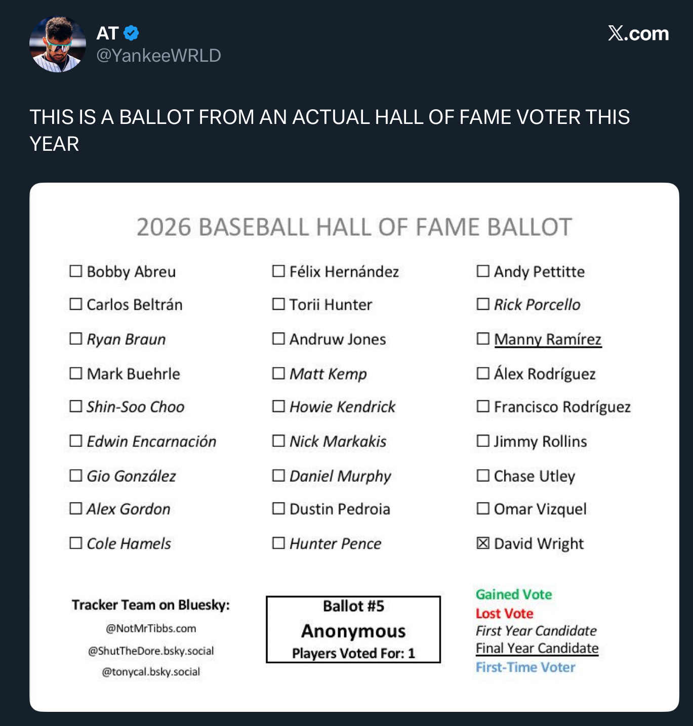Even so, I want to address one of the very first ballots that a BBWAA voter made public this year, way back in early December, because I think it illustrates a lot of problems that people have with the voters.